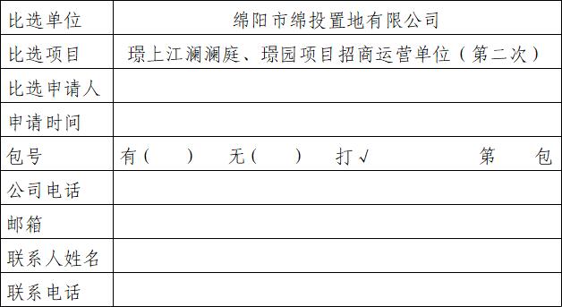 上述所有資料須加蓋比選申請(qǐng)人鮮章,到綿陽市經(jīng)開區(qū)璟上江瀾營(yíng)銷中心3樓314室報(bào)名、購(gòu)買比選文件,文件售價(jià)為人民幣0元,售后不退。