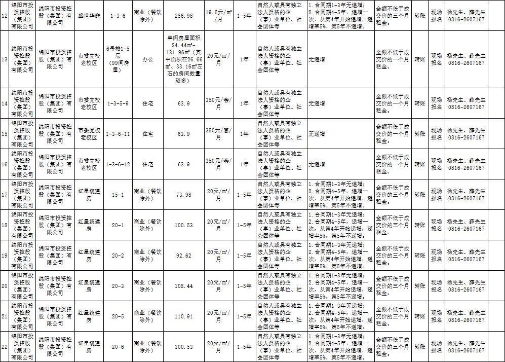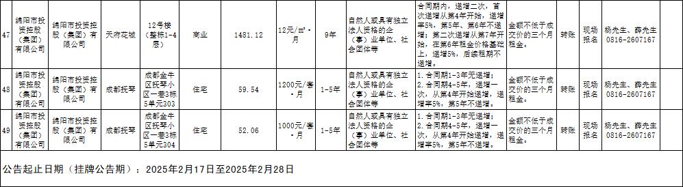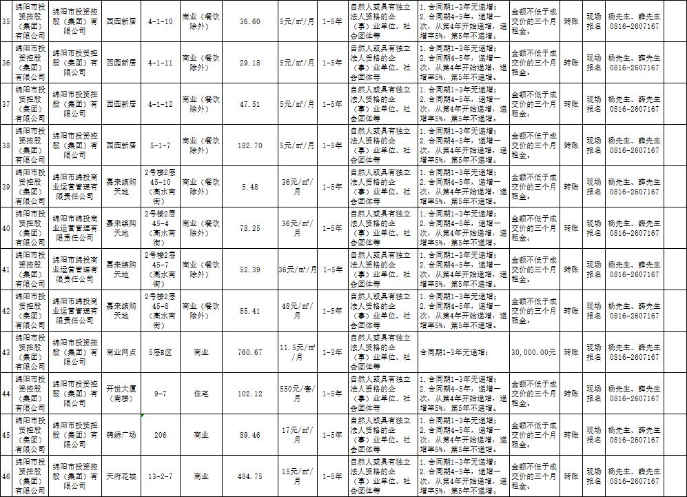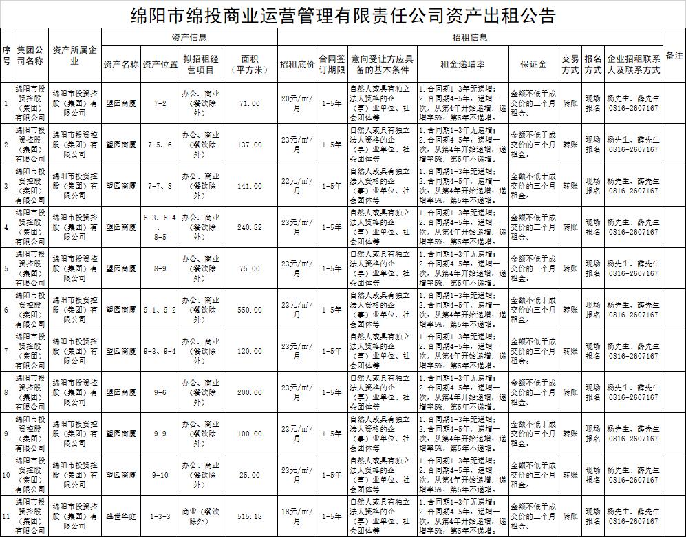 綿陽(yáng)市綿投商業(yè)運(yùn)營(yíng)管理有限責(zé)任公司資產(chǎn)出租公告