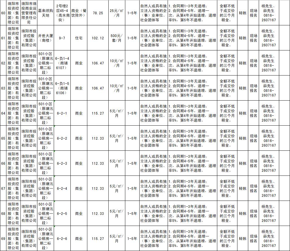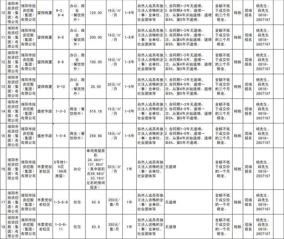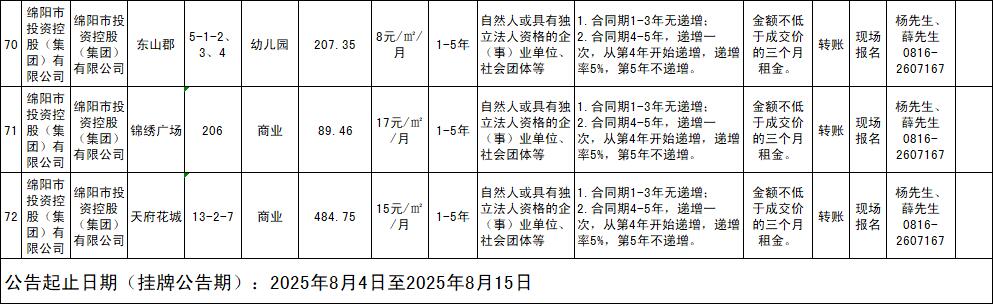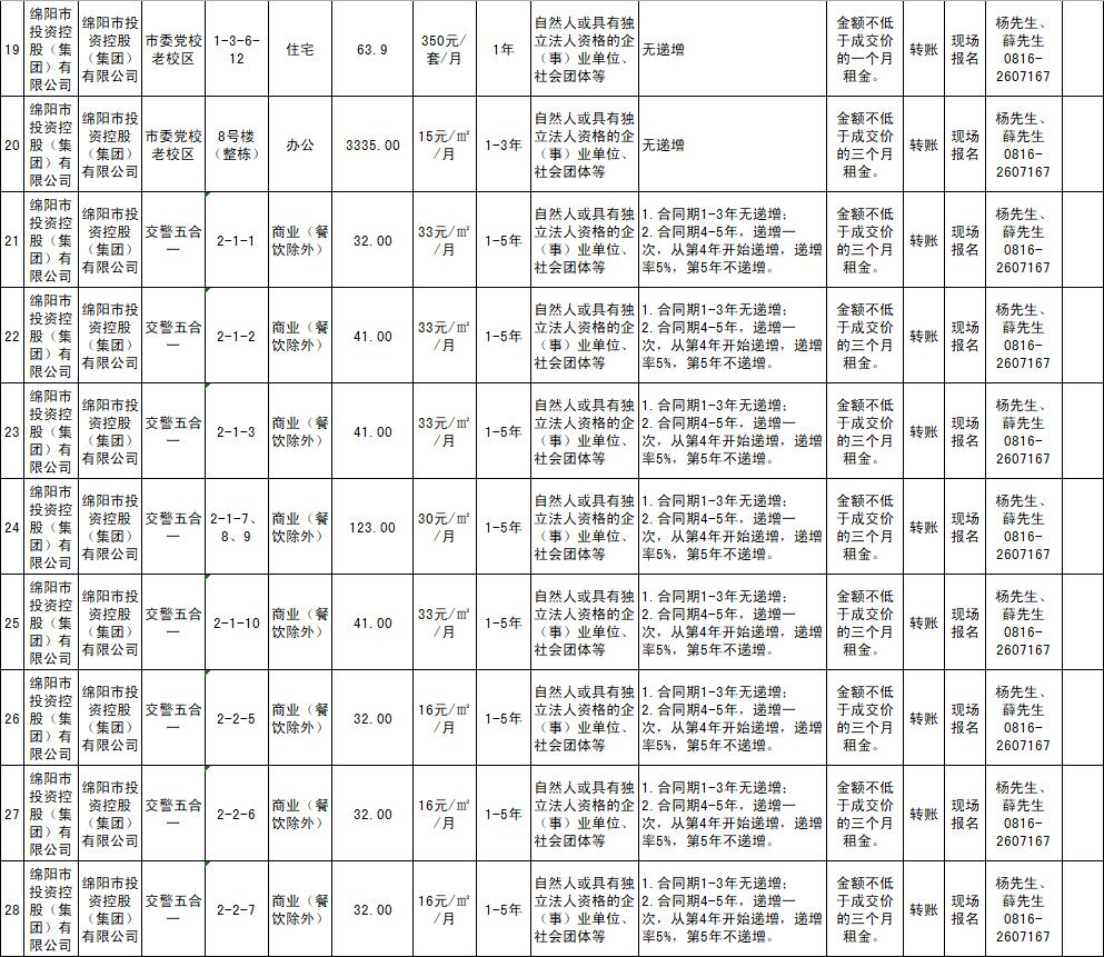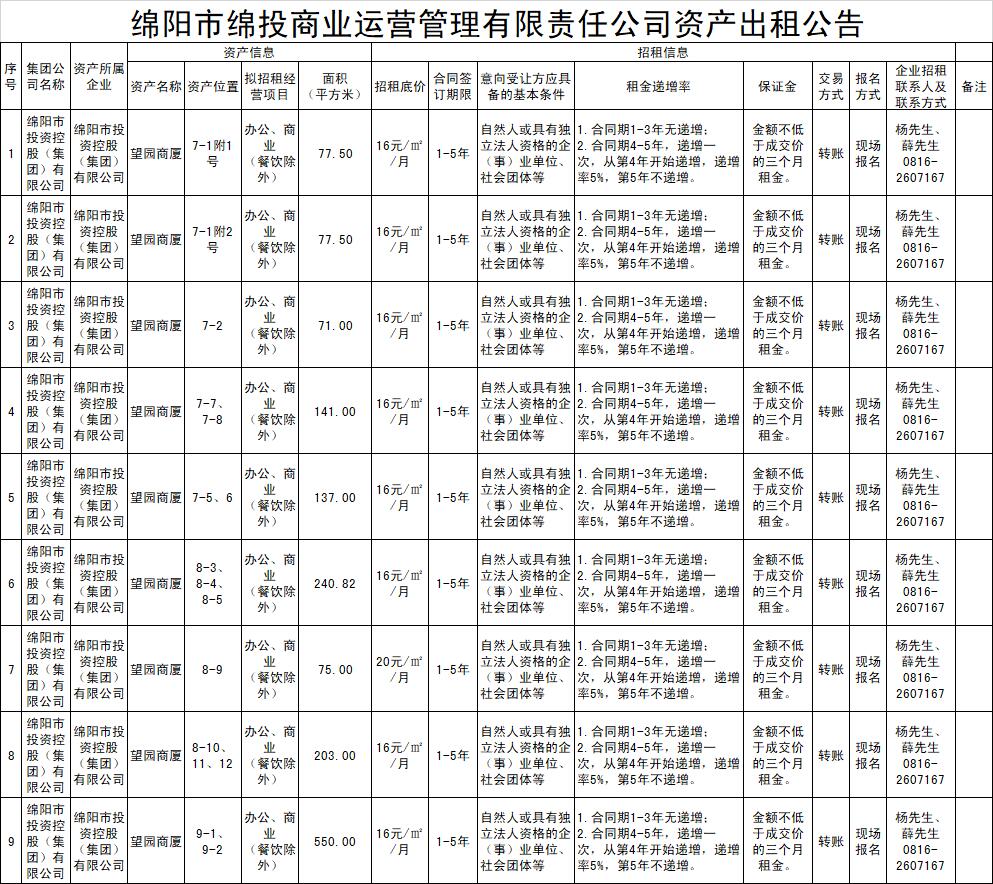 綿陽市綿投商業(yè)運(yùn)營(yíng)管理有限責(zé)任公司資產(chǎn)出租公告