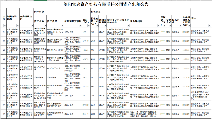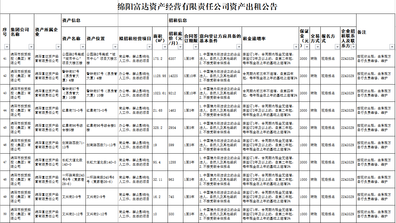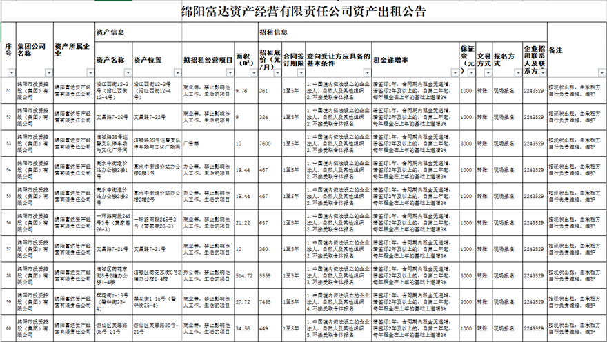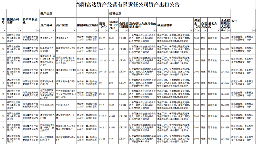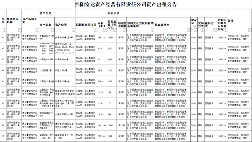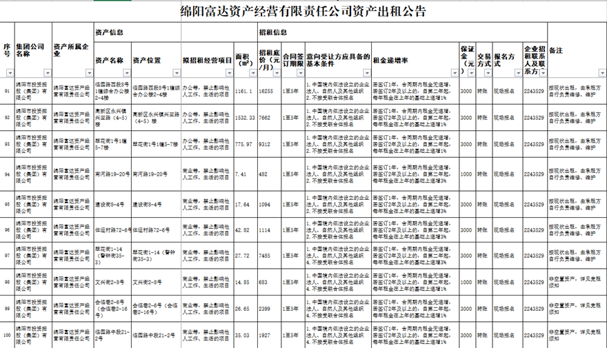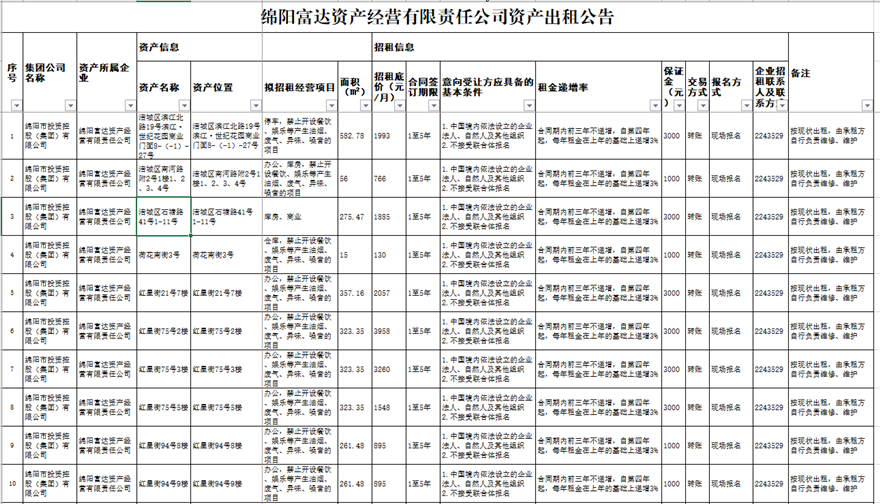 綿陽(yáng)富達(dá)資產(chǎn)經(jīng)營(yíng)有限責(zé)任公司資產(chǎn)出租公告