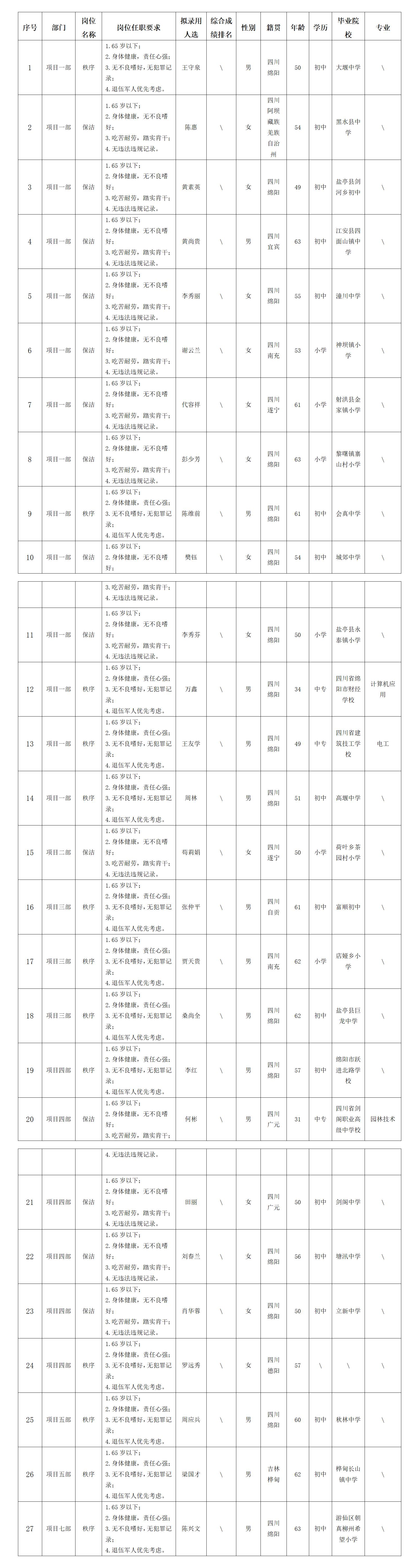 根據(jù)綿陽市康來物業(yè)服務有限公司發(fā)布的招聘公告及招聘相關規(guī)定,經(jīng)面試等程序,擬錄用王守泉等同志到各項目部工作,現(xiàn)予以公示,具體情況如下: