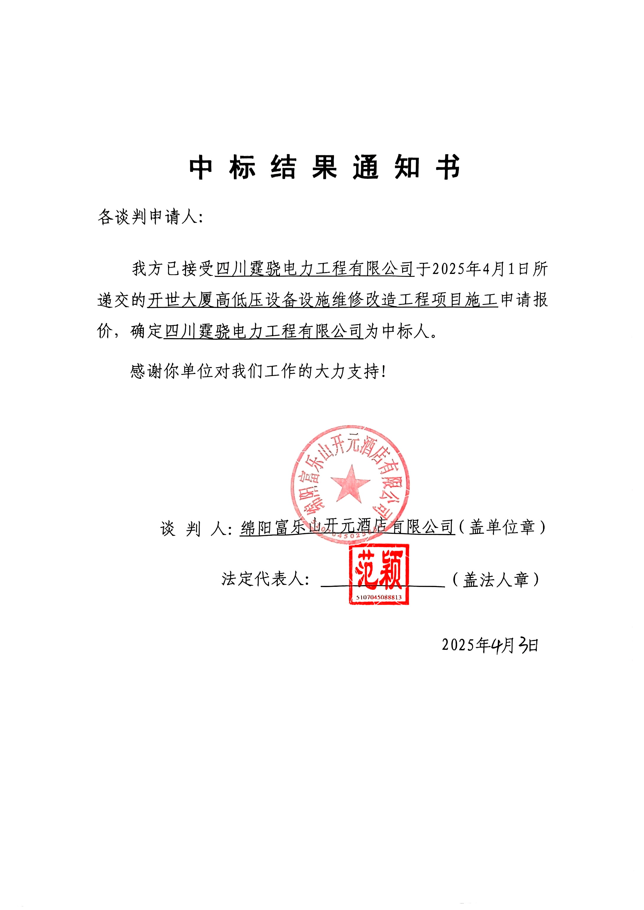 開世大廈高低壓設(shè)備設(shè)施維修改造工程項(xiàng)目施工競(jìng)爭(zhēng)性談判結(jié)果公告