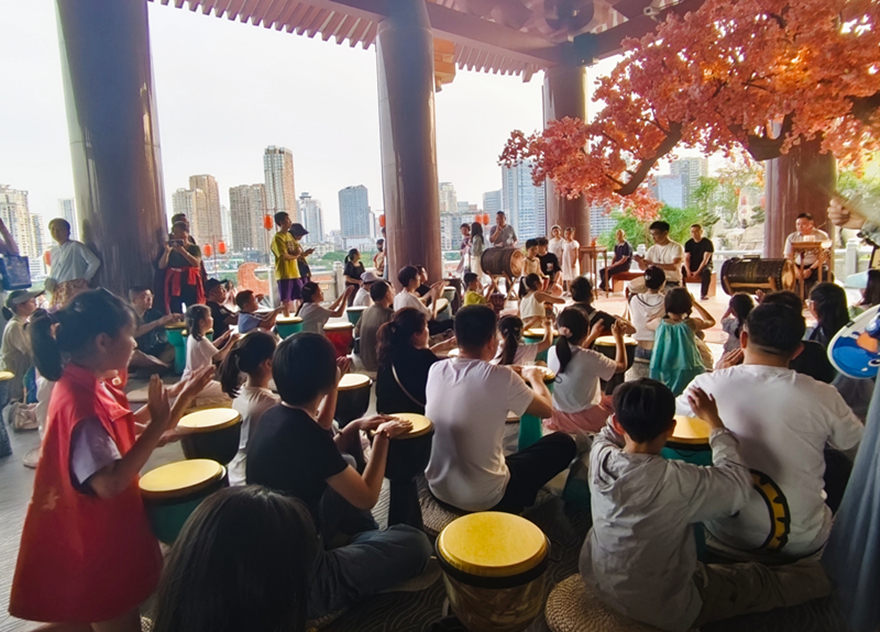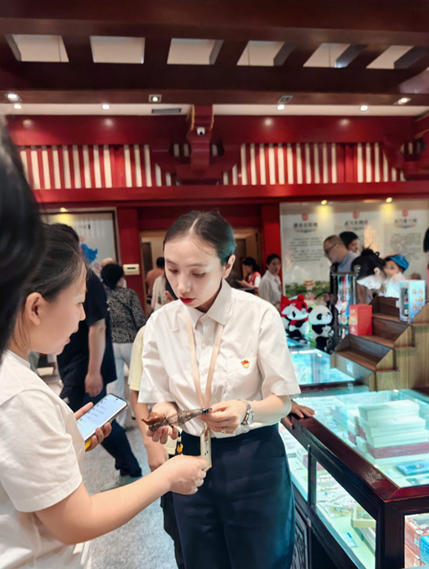 “五一”期間,景區(qū)在龜山打造“非遺工坊”,推出“漆扇制作—草編體驗—詩詞題寫—場景打卡”一體化體驗鏈,可參與、可帶走、可傳播,突破“靜態(tài)展示”傳統(tǒng)模式,通過“活態(tài)傳承+互動賦能”推動非遺文化創(chuàng)造性轉化,每天吸引逾千人次游客參與。