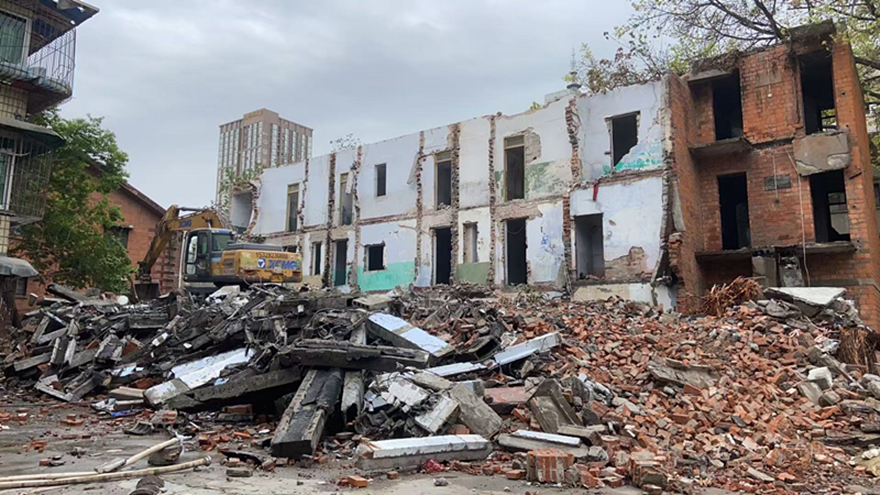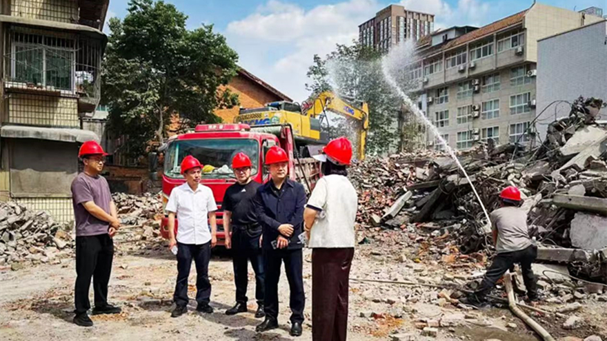 危房緊鄰周邊住宅,施工空間狹小,拆除難度極大。為確保拆除工作安全有序進(jìn)行,富達(dá)公司多次組織建筑、安全專家現(xiàn)場勘查,研究制定了“機(jī)械拆除為主,人工配合為輔”的精細(xì)化拆除方案。拆除現(xiàn)場,工作人員設(shè)置警戒線封鎖拆除區(qū)域,專人疏導(dǎo)圍觀群眾,維護(hù)現(xiàn)場秩序。伴隨著挖掘機(jī)的轟鳴聲,危房樓體結(jié)構(gòu)在專業(yè)人員的精準(zhǔn)操控下逐步瓦解,同步實(shí)施灑水降塵措施,整個(gè)拆除過程安全、有序、環(huán)保。